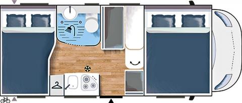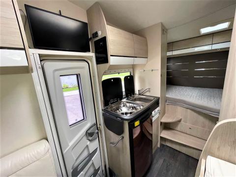 Samochód posiada bardzo dużo schowków i półek, bez problemu 4 – osobowa rodzina ma zapewniony komfort mieszkania i spania w kamperze.